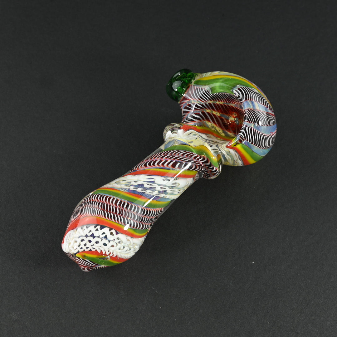 This Casper hand pipe has the dot spiral design in it. The White,Red,Yellow doted spirals sets this piece apart. These glass pipes are about 5 inches long. It has high quality thick glass. With a unique dot spiral design, Casper Glass Pipes stands out from the crowd. The high-quality, thick glass construction makes these pipes durable and long-lasting, measuring at approximately 5 inches in length. Add a touch of style and functionality to your smoking experience with Casper Glass Pipes.