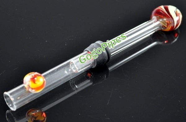 Explore our vast collection of products and discover the newest edition of Glass Blunt. This unique piece features a vibrant color on the end, similar to a Chillum for some companies, but with its own distinct design and functionality. This high-quality glass blunt is incredibly easy to use with its push and pop mechanism, and even has a rubber seal in the middle for improved grip. Admire the beautiful artwork on the mouthpiece, made with approximately 5mm thick glass, all at an affordable price. Note that colors may vary for the mouthpiece and end. Enjoy fast shipping from GogoPipes.com, as always.