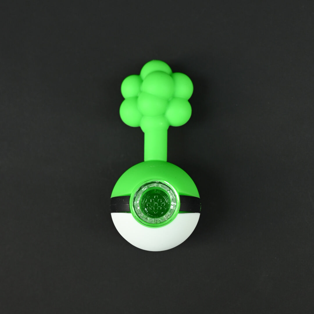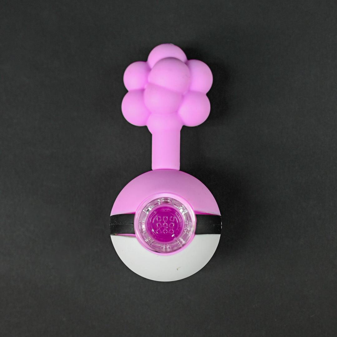 Catch a smooth hit every time with this Poke Ball silicone pipe. Made from durable heat resistant silicone and featuring a built in glass bowl, it delivers clean hits with easy cleaning. The bubble grip handle makes it easy to hold while the iconic poke ball shape adds a fun twist. Available in red blue green and pink so you can choose your favorite and smoke like a true trainer.