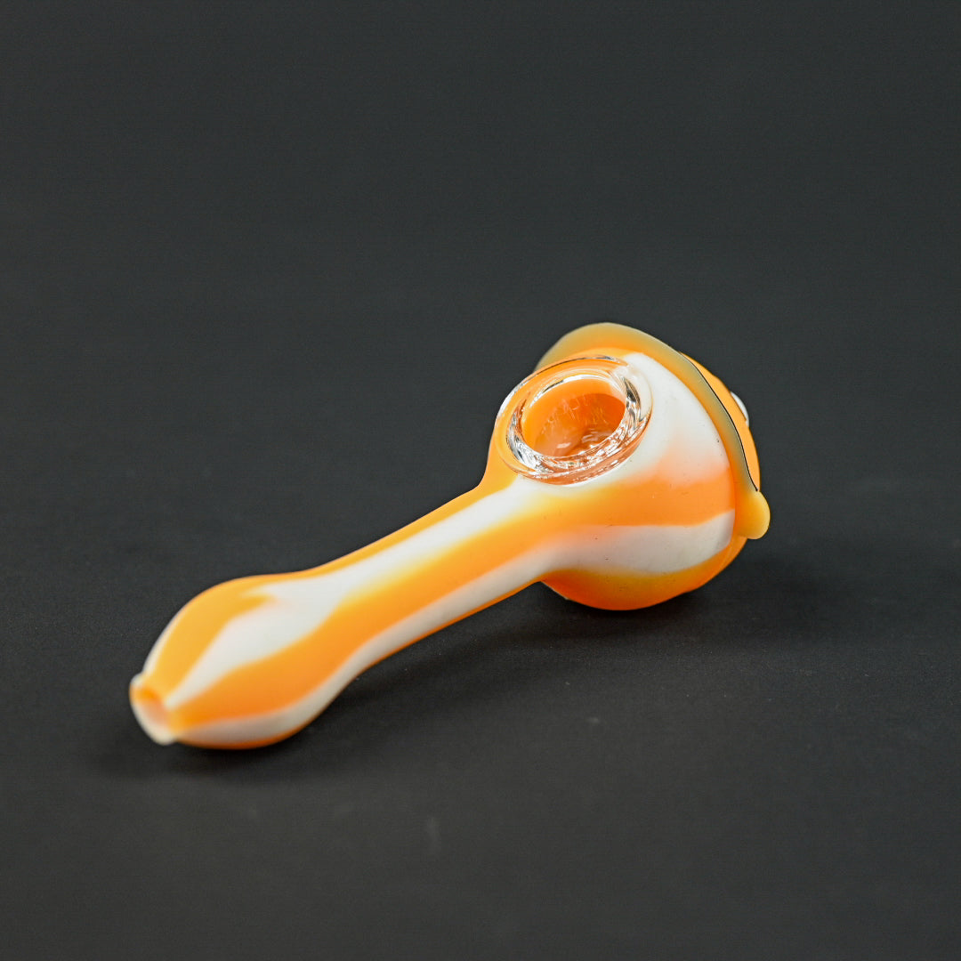 Add some character to your collection with this Rick & Morty inspired silicone pipe featuring a bold orange and white swirl design. Made from high quality heat resistant silicone, this pipe includes a removable glass bowl for easy cleaning and smooth hits. The fun cartoon face on the front gives it a playful vibe while the compact build makes it easy to carry anywhere. Ideal for fans and smokers who want a mix of function and fun.