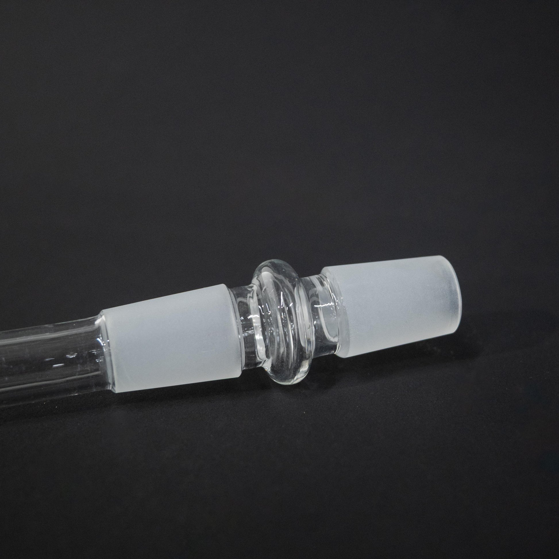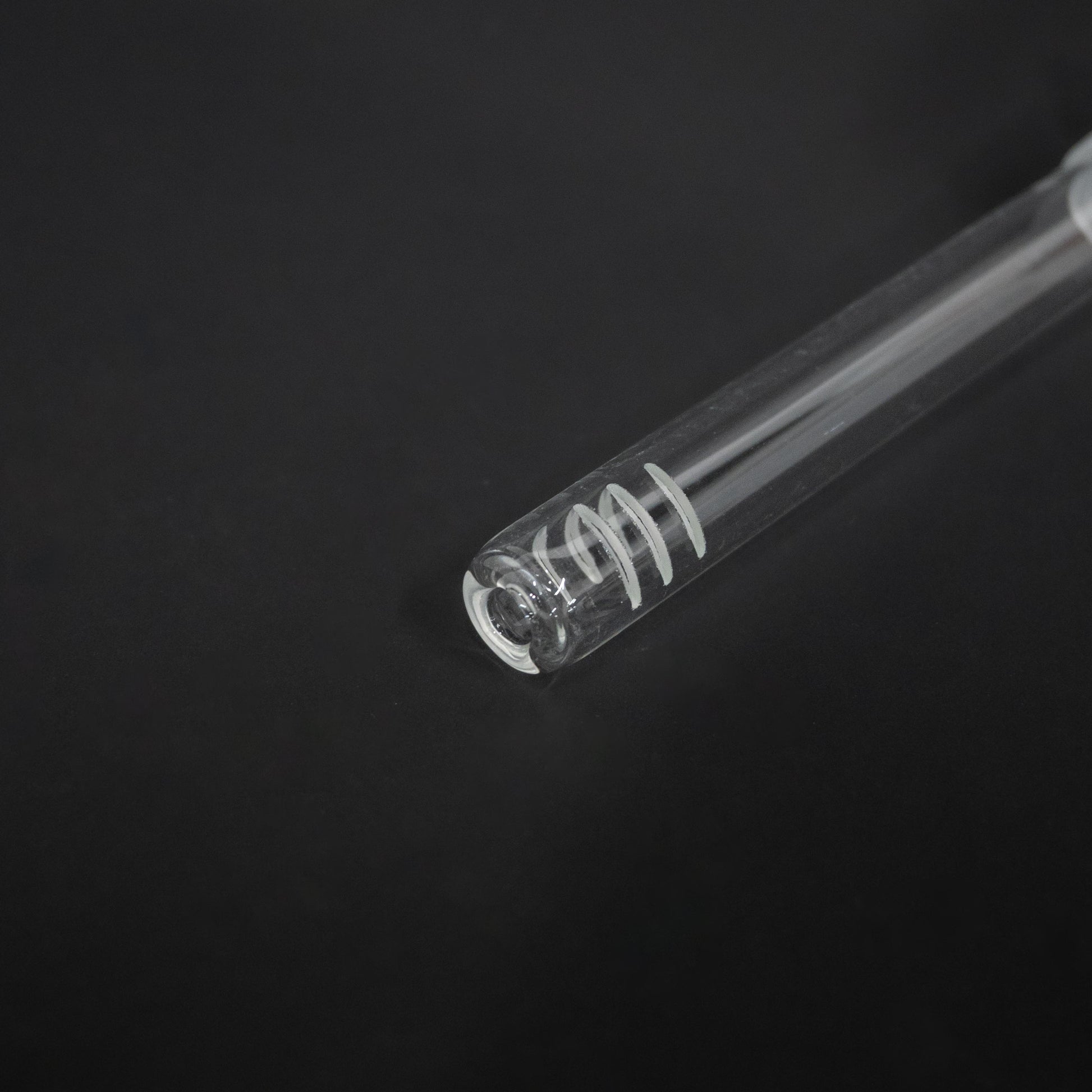 This clear spiral perc male to male glass downstem is made to refresh the pull on your favorite water pipe. Frosted male joints on both ends give a snug glass on glass seal with pipes and bowls that use the same joint size. The spiral perc at the tip helps break smoke into smaller bubbles for smoother cooler hits and better flavor. Strong clear glass makes it easy to see water and resin build up while the straight design slides out for fast cleaning or replacement. This piece has an 18mm fitting for both sides