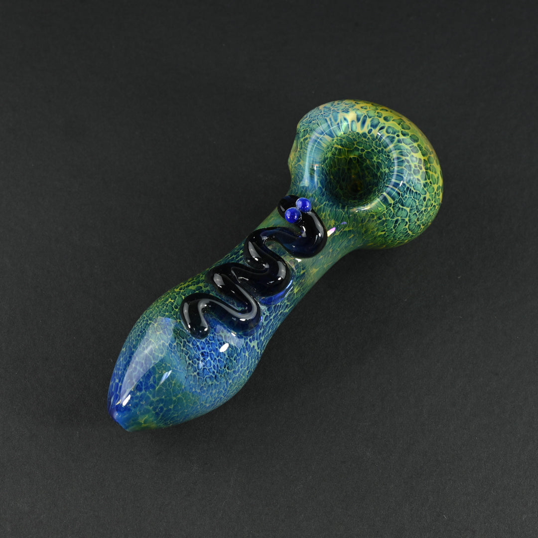 The Enforcer glass pipes are about 5 inches long. It has a beautiful snake on it. Be sure to buy that high quality premium piece for your collection. This stunning piece designed with great American colors. Same day shipping from your trusted online store.